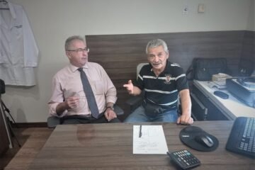 Na imagem: (à direita) o Dr. Joachim Karfunkel, gemólogo e professor da UFMG e (à esquerda), Hugo Werner Flister, gemólogo e perito judicial. Foto: GC.
